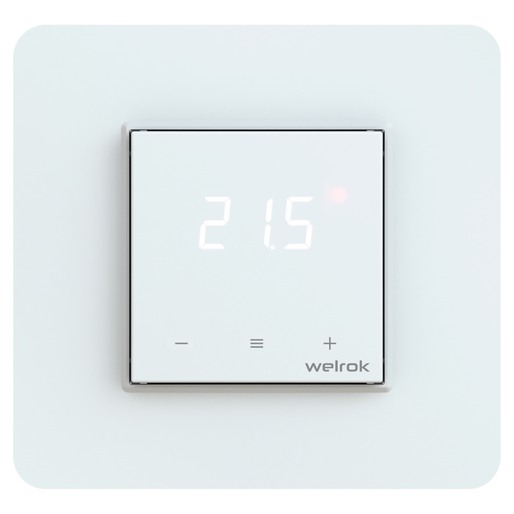 Welrok lis — цифровой терморегулятор с индикацией на просвет и долговечными сенсорными кнопками для управления электрическим и водяным теплым полом. Управление водяными теплыми полами осуществляется с помощью нормально закрытого электротермического сервопривода с рабочим напряжением 230 В.